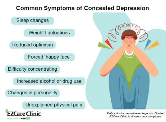 While we often pair depression with emotional pain, like sadness and crying, it can also have physical consequences. In addition to fatigue and weight changes, other physical symptoms of hidden depression include: