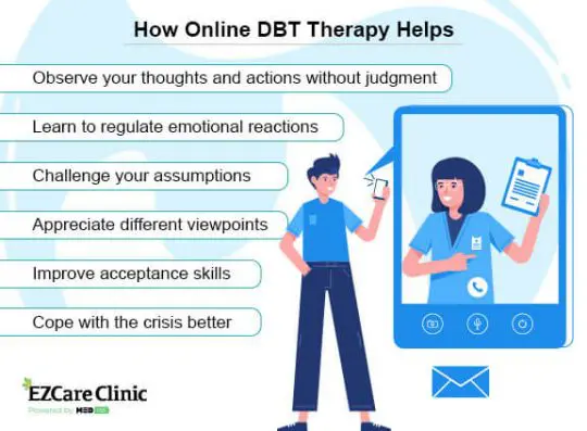 - Online DBT therapy. Sometimes people with mental health problems get into crises of emotional outbursts and other harmful behaviors. Online DBT therapy allows you to receive immediate support and manage the situation better, as you can contact the doctor at any time.