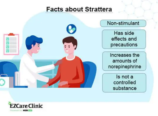 Unlike stimulant medications used in treating ADHD, Strattera is not a controlled substance. Non-stimulants such as Strattera are considered second and third-line drugs since they are often considered less effective than psychostimulants. One of the main reasons why Strattera is usually recommended despite it’s not a first-line medication is due to the lack of extreme side effects. Therefore, patients using this drug are less likely to become addicted and abuse it. Despite having mild effects, patients should still take Strattera once a day.