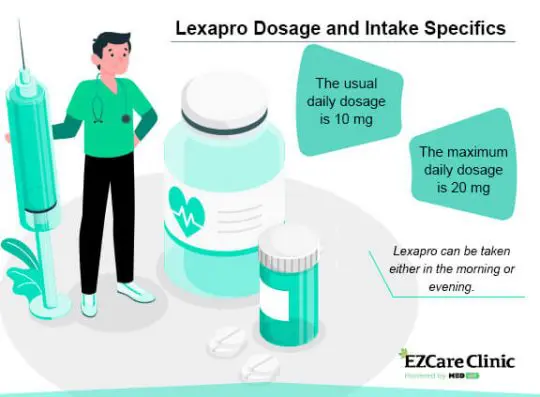 Lexapro is an oral medication that is used daily. The best time to take Lexapro is either in the morning or evening. The usual daily dosage is 10 mg. Still, Lexapro dosage depends on the disorder, the patient’s age, and the response to the treatment.