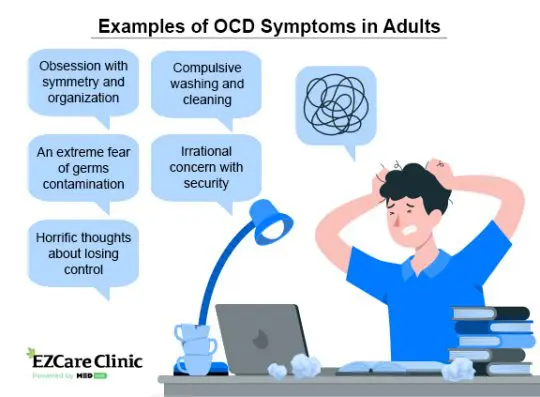 - OCD symptoms in adults may also include sexually intrusive thoughts and images.