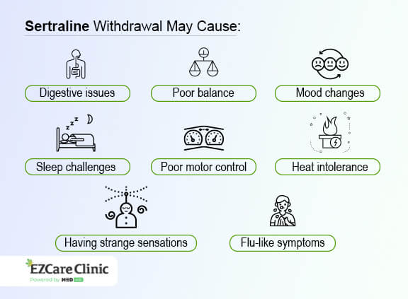 Withdrawal from Sertraline can feel awful and even seem like your condition is getting worse. It is a normal occurrence and does not mean you are addicted to the drug. However, with the right Sertraline withdrawal schedule, you can significantly reduce these symptoms or even prevent them altogether. Connect with an EZCare Clinic doctor to know more about a tailored tapering plan and stick to it.