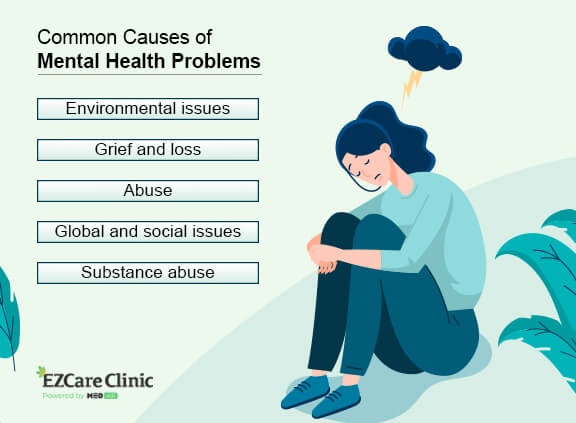 So, do mental health issues arise from one’s genetic makeup? Or, do someone’s choices and experiences influence their mental health? Essentially, both one’s life experiences and biological makeup can affect their state, and many factors contribute to mental health problems, including: